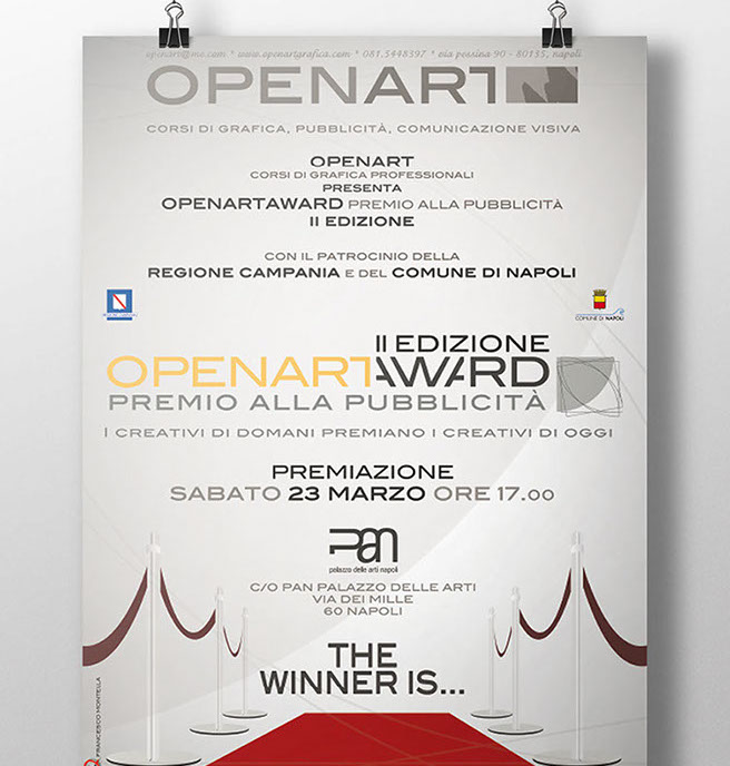 Openartaward è una occasione unica per i nostri studenti per "testare con mano" il lavoro dei professionisti della comunicazione (vedi sito dedicato per approfondimenti), ma non solo: è una occasione per mettere in pratica gli studi in quanto tutta la comunicazione, i pannelli espositivi, i cataloghi, le targhe-premio, etc., sono progettate e realizzate dai nostri magnifici OPENARTisti!