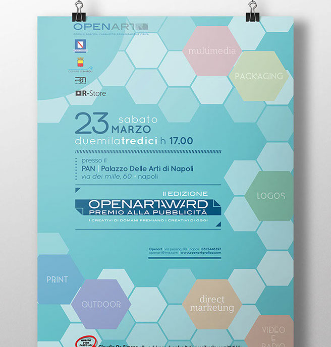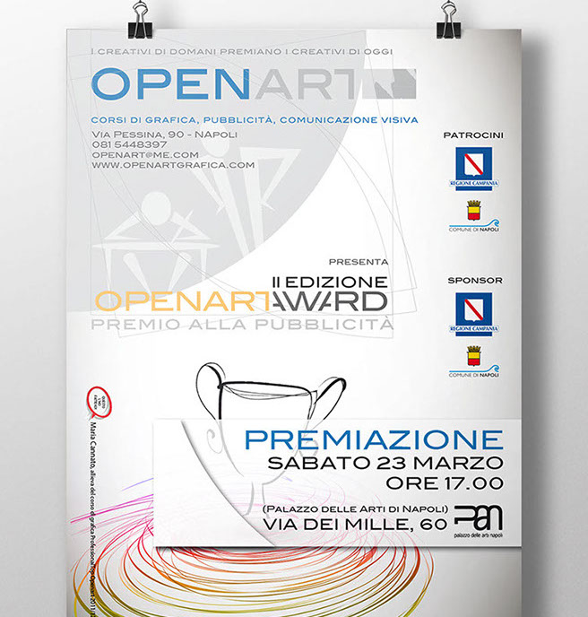Openartaward è una occasione unica per i nostri studenti per "testare con mano" il lavoro dei professionisti della comunicazione (vedi sito dedicato per approfondimenti), ma non solo: è una occasione per mettere in pratica gli studi in quanto tutta la comunicazione, i pannelli espositivi, i cataloghi, le targhe-premio, etc., sono progettate e realizzate dai nostri magnifici OPENARTisti!